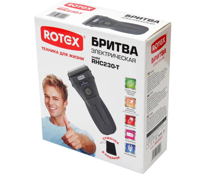 Бритва Rotex RHC230-T має ефективну систему гоління, що складається з плаваючих головок і супертонкою титанової сітки. Працює бритва від акумулятора, завдяки чому її зручно брати з собою в поїздки і подорож. Всього за кілька хвилин ми зможете акуратно поголитися навіть далеко від ванної кімнати і електромережі. Скориставшись слайд-тримерами, можна легко підрівняти волосся на скронях або бороді. Електробритва має ергономічний дизайн корпусу, що запобігає вислизання приладу з рук. Комплектується дана модель акумулятором, адаптером для зарядки і мішечком для зручного зберігання. Купити Rotex RHC230-T ви можете, оформивши замовлення у нас на сайті, а також за телефоном гарячої лінії.