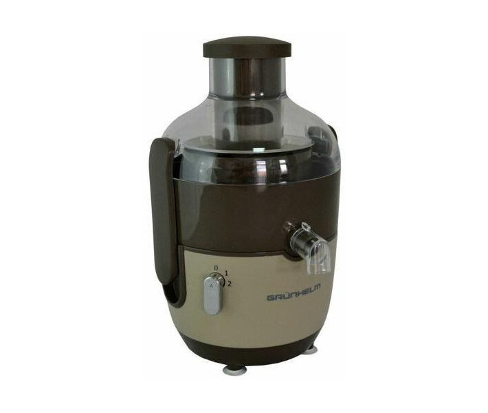 Соковижималка Grunhelm GJR625 працює по відцентровому принципом. Плоди подрібнюються, потрапляють на обертається сито. Під дією відцентрової сили м'якоть відділяється від соку. Далі з носика починає виливатися чистий сік, а макуха надходить в окремий контейнер. Співвідношення продукту і макухи становить 70:30.