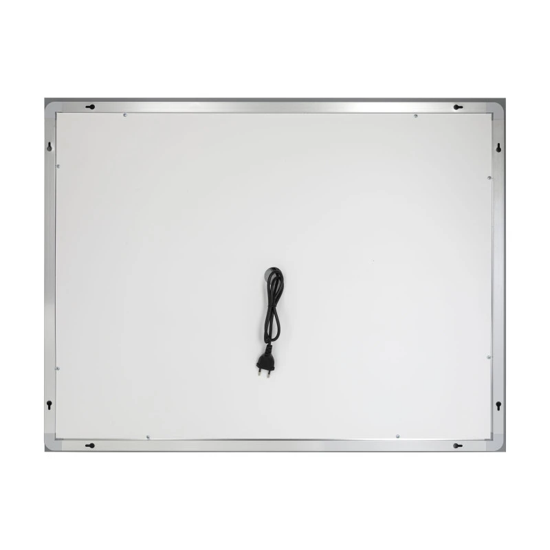 Дзеркало Qtap Mideya з антизапотіванням 700х900 QT2078NCF9070W укомплектовано світлодіодною стрічкою LED з рівним, насиченим світінням холодного білого кольору. LED стрічка не створює негативного впливу на зір людини. У дзеркалі передбачена функція ANTI-FOG – захист від запотівання. Керування здійснюється двома сенсорними кнопками на передній частині дзеркала, диммер дозволяє регулювати яскравість підсвітки. У дзеркало вмонтовані часи.
