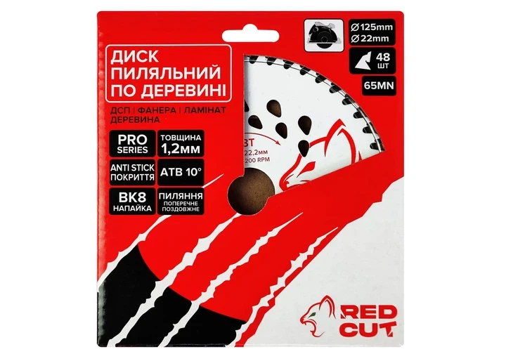Інформація Диск пильний RED CUT по деревині 125х22х48Z