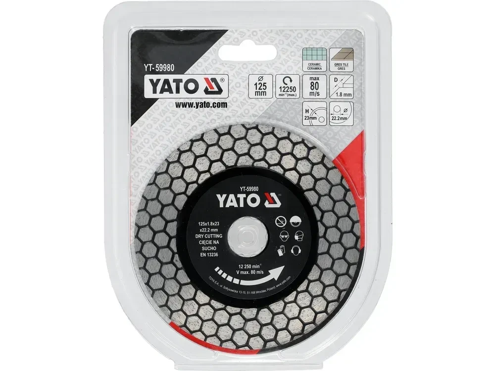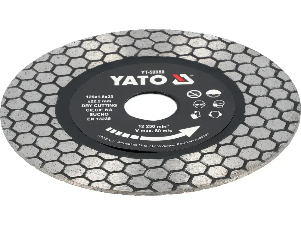 Алмазний диск YATO YT-59980 для точного сухого різання керамічної плитки, керамограніту, скла та порцеляни.