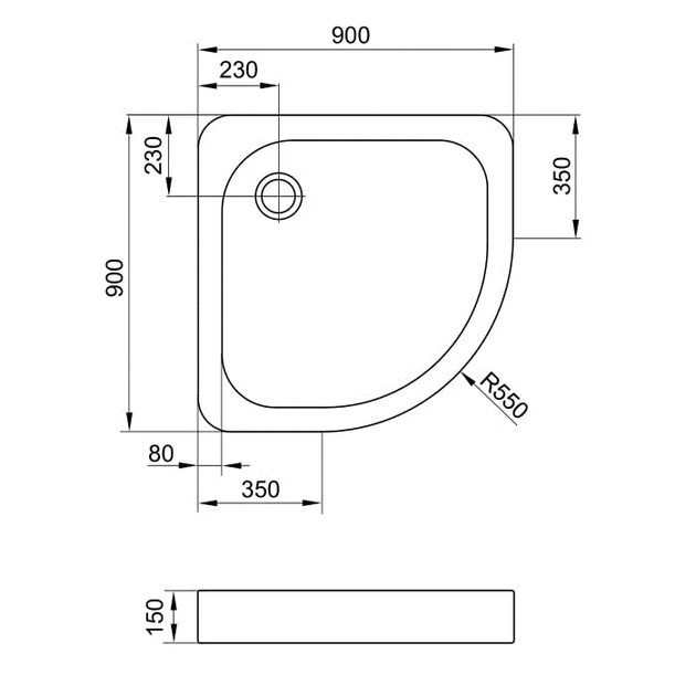Діаметр зливу 62 мм, діаметр кришки сифону 90 мм. Максимально рекомендоване навантаження на піддон 150 кг.