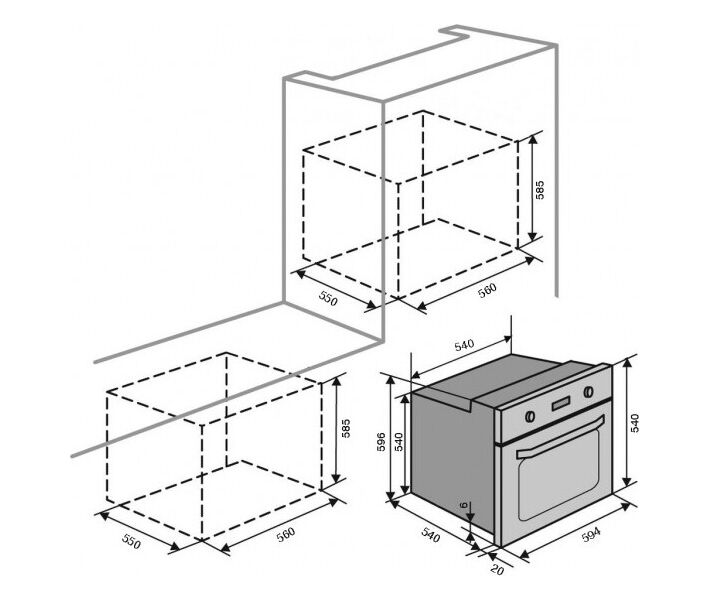 Вага духовки складає - 28 кг. Розміри упаковки - 660х625х660 мм.