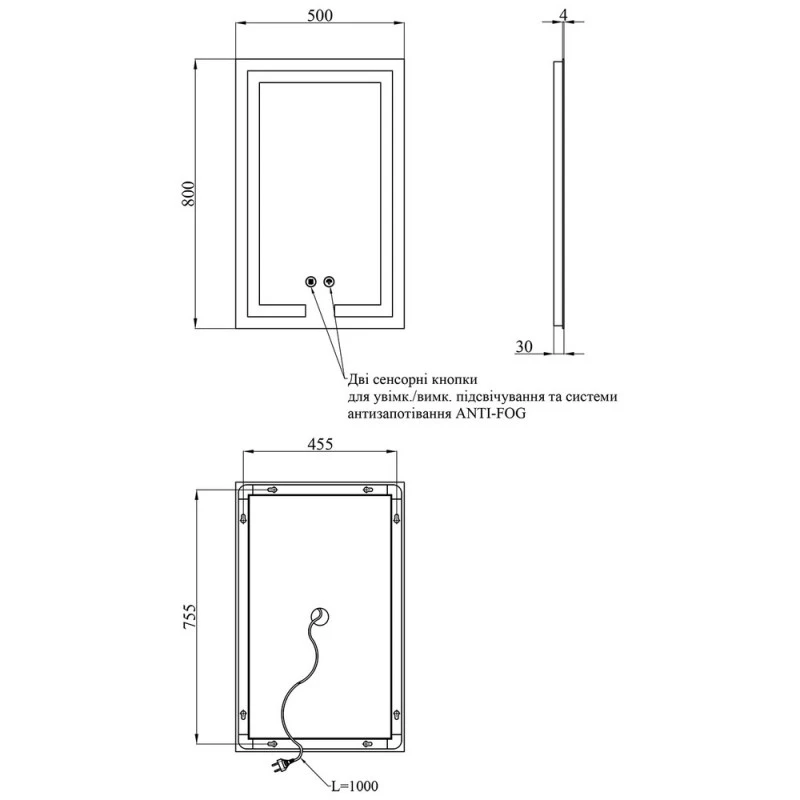 Інформація Дзеркало Kroner KRP SPIEGEL VR1-5080 LED-підсвітка, антизапотівання, сенсорний вимикач