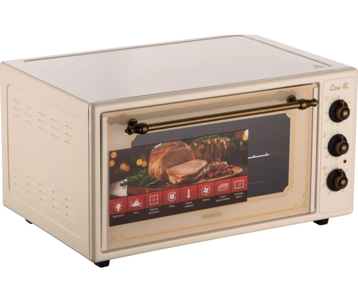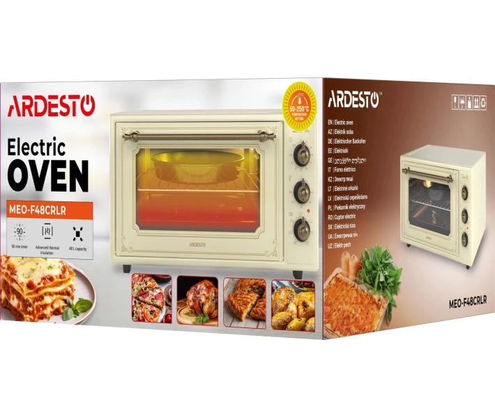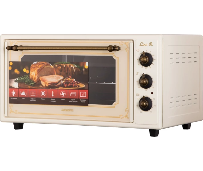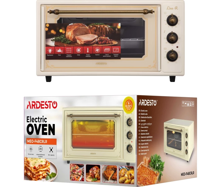 Електрична піч ARDESTO Line-R – це компактна, але потужна модель об'ємом 48 л. За потужності 1640 Вт забезпечує діапазон регулювання температури від 50 до 250 °C. Піч оснащена таймером (90 хв), 6 режимами приготування, цифровим дисплеєм та конвекцією для рівномірного розподілу тепла. Купити Ardesto MEO-F48CRLR ви можете, оформивши замовлення у нас на сайті, а також за телефоном гарячої лінії.