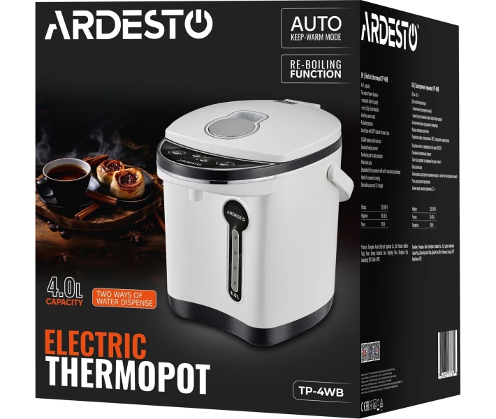Термопот ARDESTO об'ємом 4 л стане незамінним вдома або в офісі. Його сучасний сіро-чорний дизайн гармонійно підійде майже до будь-якого інтер'єру, а багатофункціональність зумовлює зручність використання. Придбати Ardesto TP-4WB можна, оформивши замовлення у нас на сайті, а також по телефону гарячої лінії.