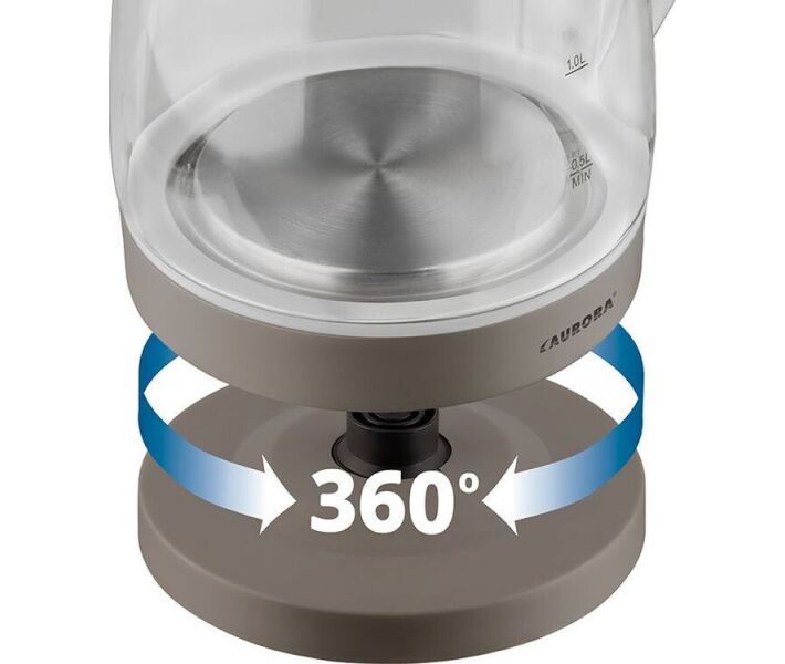 Чайник Aurora AU 3500 має вбудоване в корпус блакитне підсвічування. Ось тут вже всі переваги скла проявляються на повну. При закипанні води неможливо відвести очей від вируючого синьої рідини! Цей процес дуже заспокоює, тому вам захочеться робити перерви на чай регулярно!