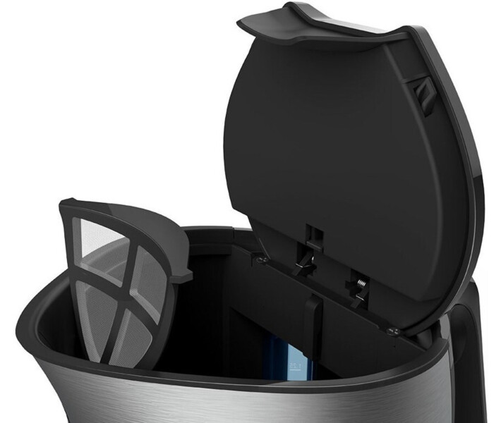 Ергономічна ручка розрахована на утримання повного об'єму (1,7 л.) в одній руці без зусиль. Корпус зроблений з металу та пластику, причому віконце на бічній пластиковій стінці зроблено не лише заради естетики, а й із практичною метою. Ви завжди знаєте, скільки води залишилося всередині, а навіть якщо і забудете її вчасно долити, нічого страшного не станеться. Система безпеки складається з 4-х рівнів та відключає прилад автоматично при знятті з платформи, при закипанні, при повному википанні, а також блокує включення без води.