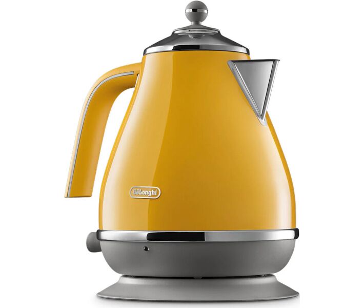 Електрочайник Delonghi KBOC 2001 Y зроблений в стильному форм-факторі, який чудово копіює звичайні моделі пристроїв, які не мають підключення до мережі. Використовуючи зовнішній вигляд подібних чайників, можна домогтися чудово акцентованої обстановки в стінах кухні, тому що він стане досить яскравою деталлю, звертає на себе увагу. Крім форми, відмінно виглядає і його металева поверхня, пофарбована в жовтий. Яскравий і вишуканий, він точно сподобається цінителям красивих речей.
