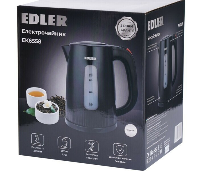 Електрочайник Edler EK6558 стильне та функціональне рішення для приготування гарячих напоїв. За його допомогою ви зможете швидко та легко заварити чай або каву у будьякий час дня. Компактний дизайн дозволяє зекономити простір на вашій кухні, а сучасні технології забезпечують ефективну роботу пристрою. Електрочайник Edler EK6558 надійний та простий у використанні, що робить його ідеальним вибором для організації вашого чайного куточку. Придбайте цей електрочайник і насолоджуйтеся свіжими та ароматними напоями кожен день.