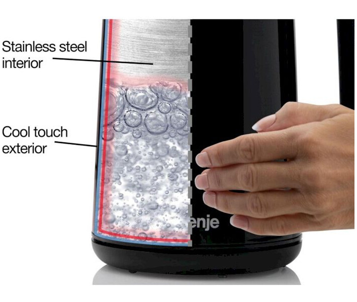 Подвійні стінки забезпечують покращену ізоляцію, щоб вода залишалася гарячою довше, і знижують температуру зовнішніх стінок корпусу, щоб ви не обпеклися.