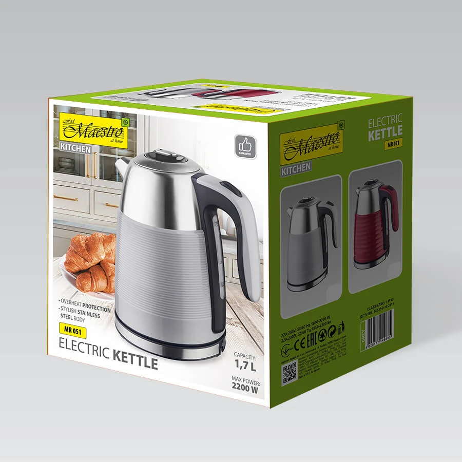Електрочайник Maestro 051 це стильне та зручне рішення для приготування гарячого напою. З його допомогою ти швидко та легко зможеш вскипятити воду для чаю або кави. Крім того, він відрізняється надійністю та тривалістю, що дозволить тобі насолоджуватися свіжим напоєм кожен день. Електрочайник Maestro 051 стане невідємним помічником на кухні та прикрасить інтерєр своїм сучасним дизайном.