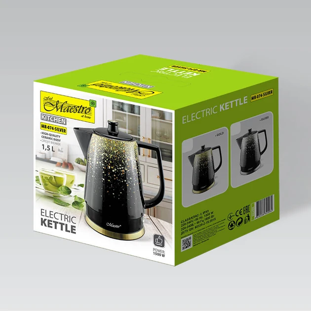 Електричний чайник Maestro 074 надійний помічник для швидкого заварювання чаю в будьякий час дня. Модель поєднує в собі стильний дизайн та високу якість матеріалів, що робить його ідеальним вибором для сучасної кухні. Зручна ручка та компактні розміри дозволяють легко користуватися і зберігати чайник. Він оснащений захистом від перегріву та автоматичним вимкненням, що забезпечує безпечність під час експлуатації. Maestro 074 поєднує в собі функціональність та стиль, зробить процес заварювання чаю простим та зручним.