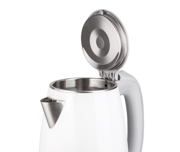 При натисканні кнопки механізм відкривання кришки спрацьовує м'яко і плавно, виключаючи розбризкування конденсату з кришки. Прихований нагрівальний елемент забезпечує швидке кип'ятіння, надійність та простоту очищення чайника, а вбудований контролер захищає від перегріву.