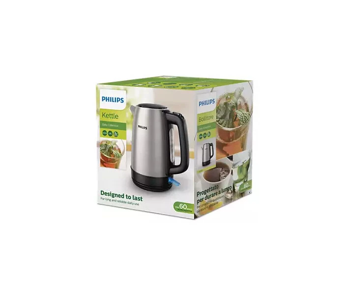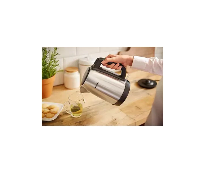 Чайник Philips HD9350/90 – модель із високоякісної нержавіючої сталі, яка забезпечить вас окропом лише за кілька хвилин. Розроблений для постійного використання, він стане ідеальним доповненням до іншої кухонної техніки або прикрасить кімнату відпочинку в офісі. Настав час для чашки чаю? Натисніть на кнопку і 1,7 окропу готові до заварювання.