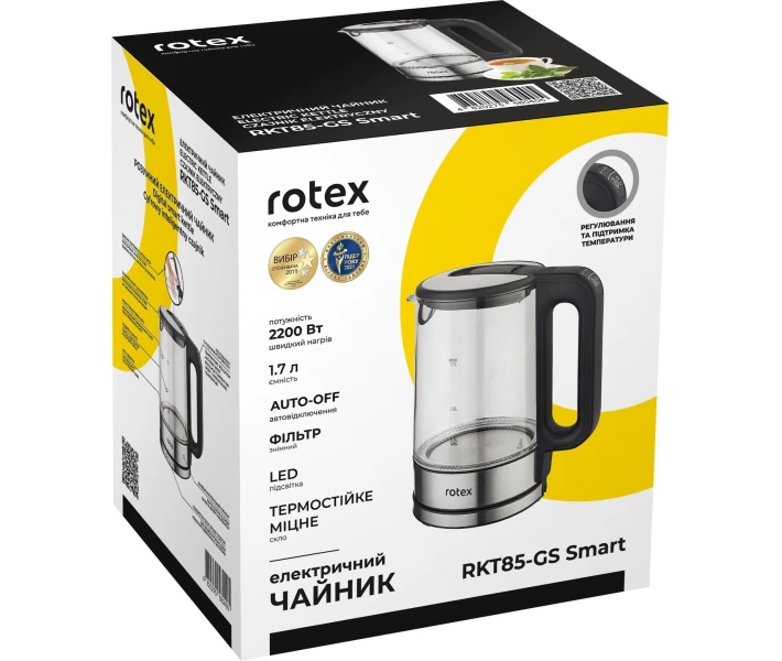 Інформація Електрочайник скляний Rotex RKT85-GS Smart