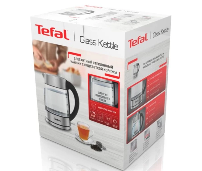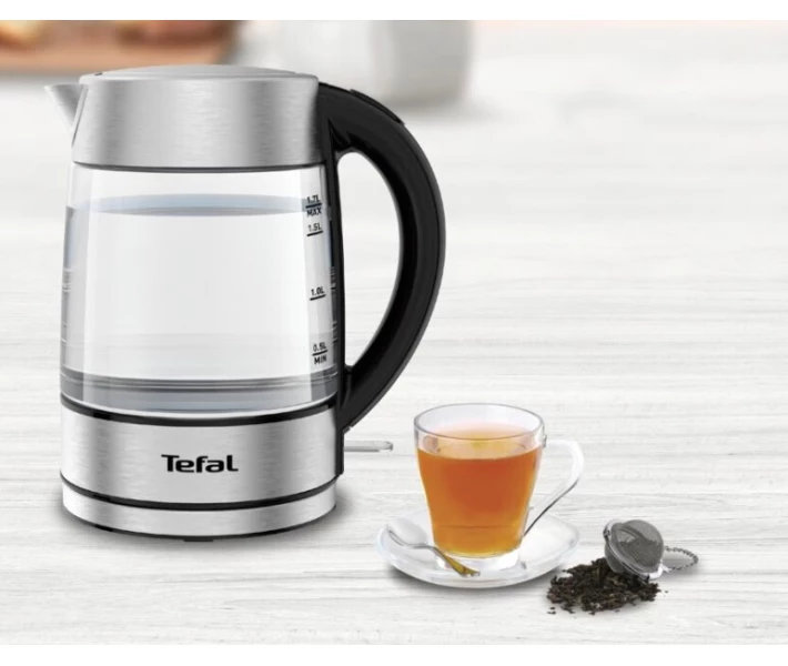Tefal 1,7-літровий скляний чайник Насолоджуйтесь найкращою якістю своїх чаїв зі свіжою водою, кип’яченою в елегантному чайнику із чистого благородного скла.