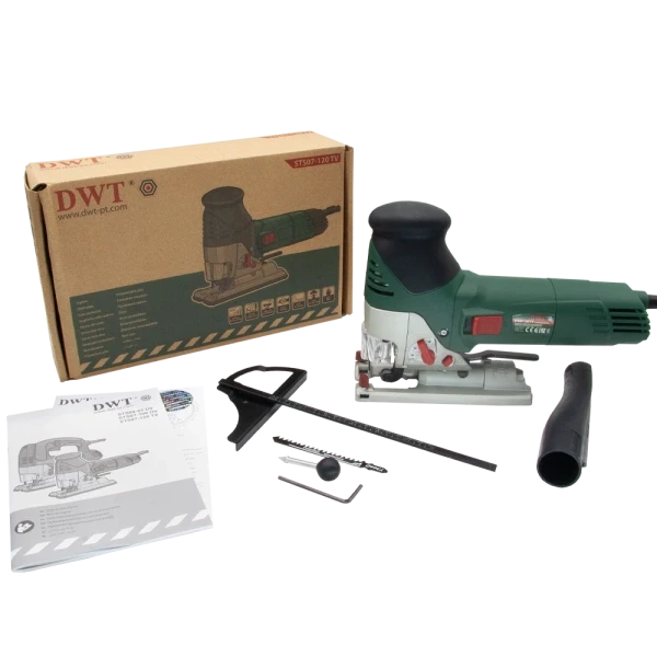 Номінальна потужність 710 Вт. Сила струму при напрузі 220-230 В 3.1 A Число ходів холостого ходу 700-3000 мінˉ¹ Довжина ходу пиляльного полотна 26 мм Макс. різальна здатність у дереві 120 мм Макс. різальна здатність в алюмінії 20 мм Реж. здатність у сталі 10 мм Максимальний нахил корпусу (зліва/справа) 45° / 45° Вага 3 кг