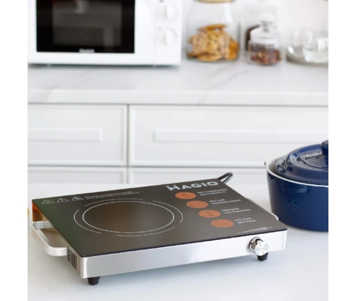 Інфрачервона настільна плита MG-442 Електрична інфрачервона плита MG-442 із стильним дизайном стане оригінальним акцентом в інтер'єрі Вашої кухні. За керамічною поверхнею плити легко і просто доглядати. Пристрій оснащений зручними ручками для перенесення. Користувачам також доступне регулювання потужності. Характеристики настільної плити MAGIO MG-442: Номінальна потужність, Вт: 1500 Поверхня: Керамічне скло Регулювання: Потужності Захист від перегріву: Так Ручки для перенесення: Так.
