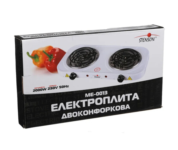 Ця електроплита Stenson ME-0013-S виготовлена з металу. Вона стане в нагоді в місцях де немає газопроводу, її можна взяти з собою на дачу, в заміський будинок або встановити на роботі, вона допоможе приготувати смачну страву або підігріти вже готову. Плита електрична Stenson двоконфоркова переносна потужністю 1000В кожна комфорка та діаметром 14см. Нагрівальний елемент - спіраль. На корпусі знаходиться індикатор живлення. Плитка працює в 5-ти режимах, що дозволить оптимально налаштувати температуру та потужність подачі тепла. Комфорт: настільна електроплита Матеріал: метал Потужність: 2000 Вт. (кожна по 1000 Вт.) Діаметр панелі: 14 см Кількість режимів: 5