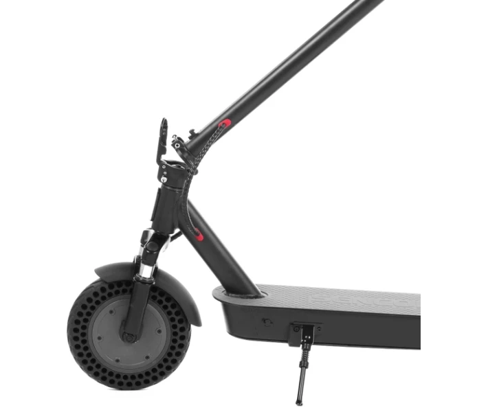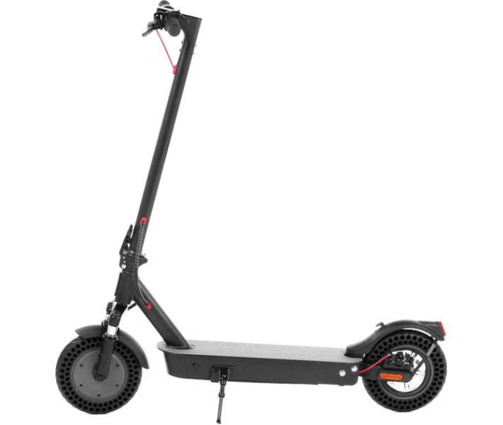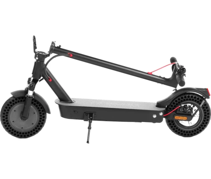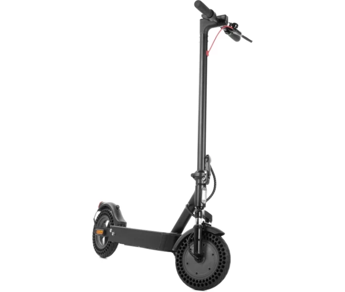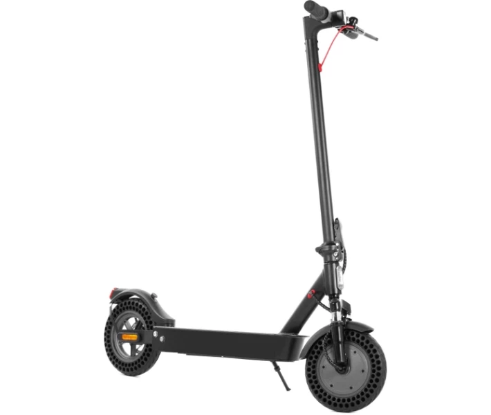 Завдяки 10-дюймовим перфорованим шинам із гарними амортизуючими властивостями - вам не доведеться турбуватися про прокол, який може незабаром закінчити вашу поїздку. Для підвищення безпеки електросамокат обладнаний подвійною гальмівною системою – електричною за допомогою двигуна та механічною за допомогою дискових гальм. При натисканні на важіль гальма - постійно блимає червона сигнальна лампа на задньому бампері.