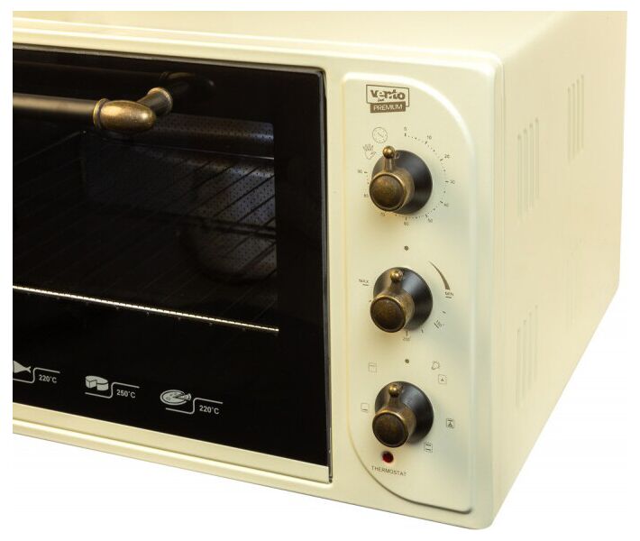 Електрична піч Ventolux FRANCESCA отримала міцний корпус. В його основі використовується метал, що забезпечує надійність печі. Внутрішньо покриття - емальоване. Це забезпечує збереження і довговічність печі. На фронтальну панель печі винесені регулятор таймера на 90 хвилин, ручка термостата з можливістю нагріву до 250 градусів за Цельсієм, регулятор вибору режимів роботи і світлові індикатори.