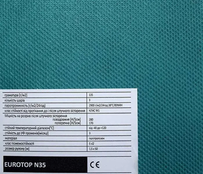 Якщо розглянути конкретніше, то Eurotop N35 наділена зовнішнім покриттям як основою для кріплення всієї плівки та як головним захисником від потрапляння вологи. Наступний, проміжний сегмент – це так звана мембрана, що здатна дихати, пропускати потоки свіжого повітря. Останній внутрішній шар традиційно забарвлений у білий колір, основна ціль якого – захист мембрани від різнорідних механічних впливів. Відтак багатошарова структура плівки дозволяє виконувати своє призначення максимально надійно протягом довгого часу.