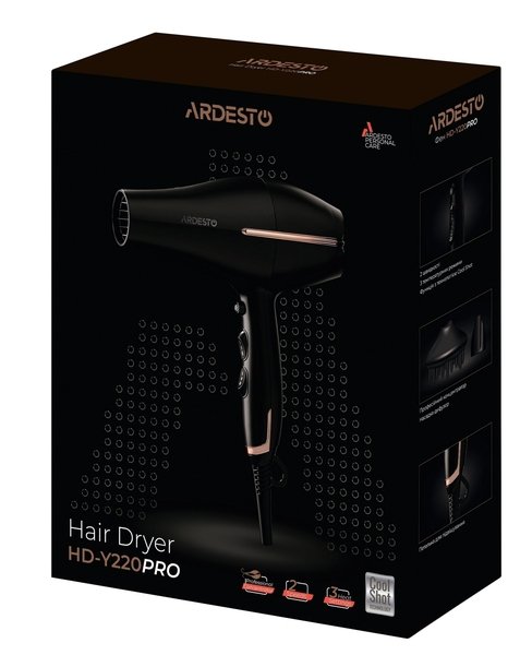Фен Ardesto HDY220PRO це ідеальне рішення для тих, хто цінує комфорт і якість при укладанні волосся. Він забезпечує швидке і якісне висушування волосся, роблячи їх слухняними і блискучими. Завдяки інноваційній технології, цей фен має високу ефективність і надійність. Легкий і зручний у використанні, він дозволяє створювати унікальні зачіски й укладки в домашніх умовах або в салоні. Фен Ardesto HDY220PRO стане незамінним помічником у повсякденному догляді за волоссям.