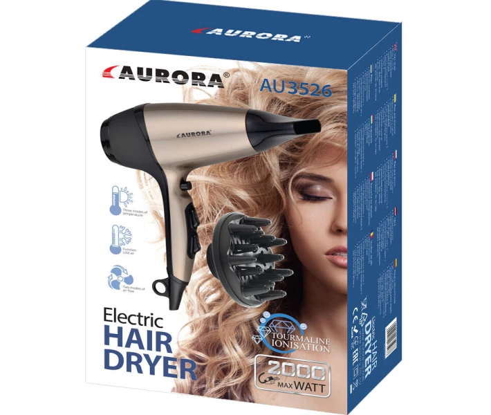 Aurora AU 3526- потужний і неймовірно стильний фен. Такий прилад стане вашим незамінним помічником у створенні зачісок і просушування волосся. Завдяки ряду інноваційних функціональних рішень він ефективно виконує поставлене завдання при максимально дбайливому впливі на волосся.