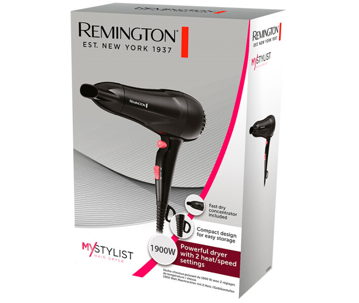 Новий компактний, але потужний, 1900 Вт, фен D2000 з лінійки MyStylist – це чудове бюджетне рішення для кожного від всесвітньо відомого американського бренду Remington. Модель ідеально підходить як для щоденного використання, так і для подорожей. Фен оснащений 2 налаштуваннями швидкості та температури, щоб ви могли вибрати той режим, який підходить саме вашому волоссю. Крім того, фен має функцію подачі холодного повітря, яка допоможе зафіксувати готову зачіску. У комплекті пристрою зручний концентратор для повсякденного використання. D2000 також має знімну задню решітку, завдяки чому доглядати за приладом стає набагато простіше. Петля для підвішування та невеликі габарити роблять зберігання фена неймовірно зручним.