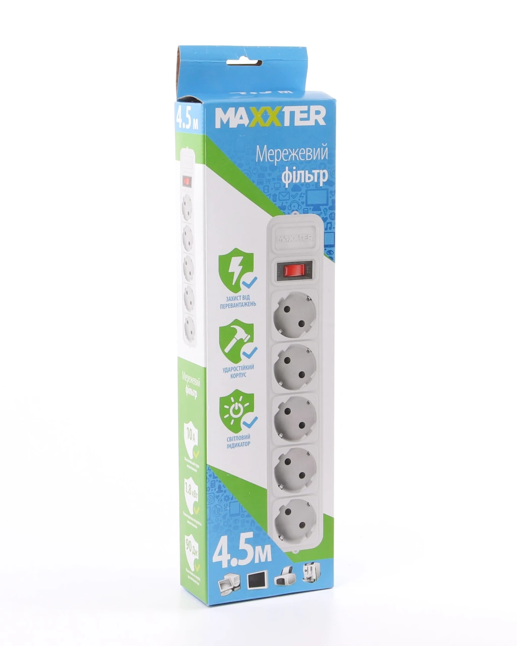 Інформація Фільтр комп"ютерний Maxxtеr 4,5м 5 розеток сірий