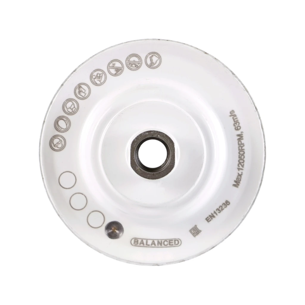 Застосовується на кутошліфувальних машинах 125 мм з частотою обертання шпинделя 11000 об / хв. в сухому режимі.