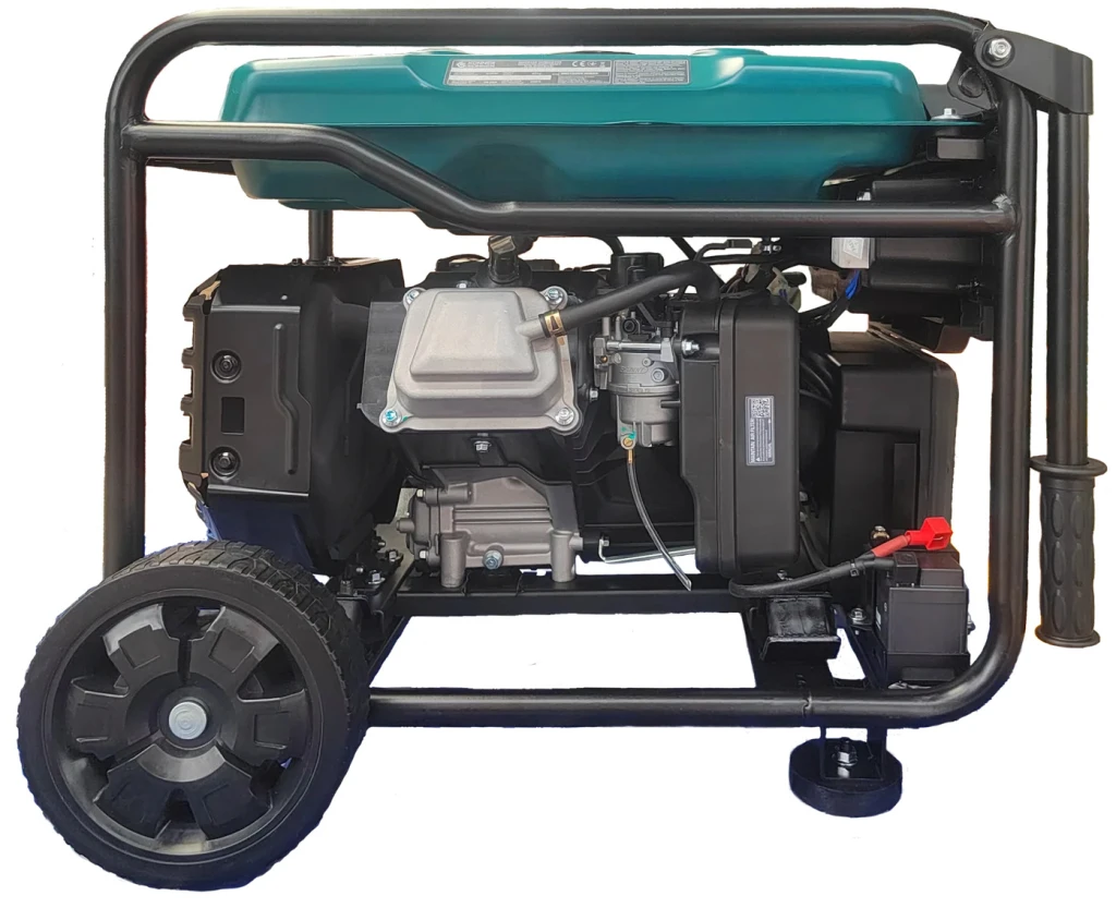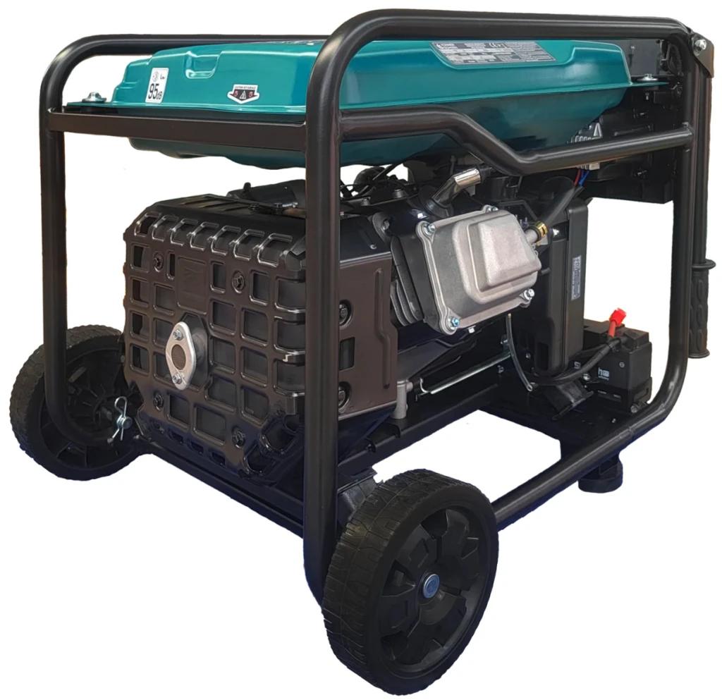 Könner & Söhnen KS 6500iE — інверторний бензиновий генератор потужністю до 6,5 кВт максимальна/6,0 кВт номінальна, що забезпечує стабільну чисту синусоїду 230 В при частоті 50 Гц — безпечно для чутливої електроніки (ноутбуки, медичні та телекомунікаційні прилади). Має електричний старт, LED-дисплей для контролю параметрів, розетки Schuko та CEE 32 А, вихід 12 В і USB QC 3.0 + Type-C. Оснащений економічним двигуном, режимом економії палива та мідною обмоткою альтернатора для надійної роботи. Середній час роботи до ~6 год при 50 % навантаженні.