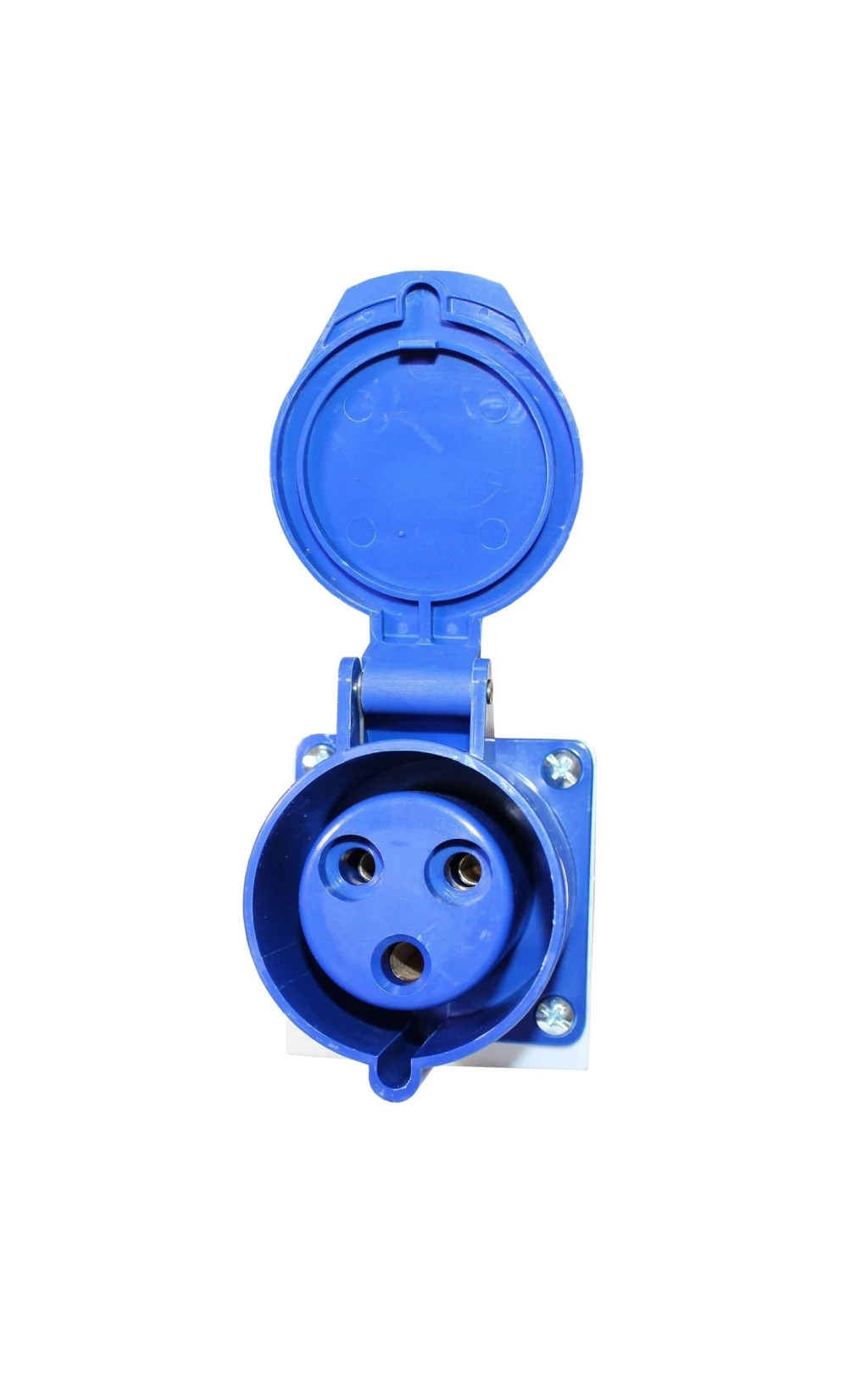 Розетка штепсельна силова 123 стаціонарна 2Р+PЕ 32А 220В IP44 товарного знаку Techno Systems промислового призначення – використовується для експлуатації в однофазних мережах змінного струму напругою до 415 В.