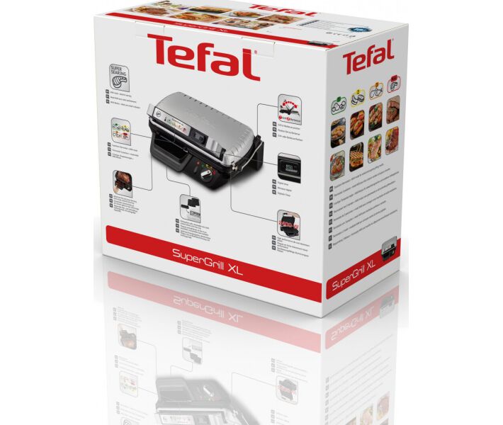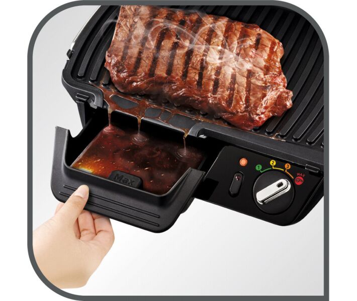 Купити гриль Tefal GC461B34 варто хоча б тому, що він дійсно відповідає всім гарантіям серед подібних виробів і співвідношенню ціна-якість. Гриль споживає потужність 2,4 кВт, алюмінієві пластини і піддон для стікання жиру можна мити в посудомийній машині, вони знімаються і встановлюються дуже легко. Гриль не виробляє бризок на сусідні поверхні, так як краю захищені окремими перегородками. Площа поверхні гриля становить 800 см2. На передній панелі також присутні індикатори включення і готовності до роботи.