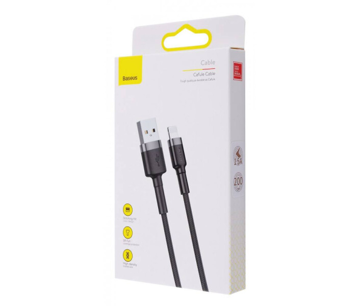 Кабель Baseus CAFULE USB Micro 1.5A 2м чорносірий надійне і стильне рішення для підключення пристроїв. Цей кабель забезпечує швидку і стабільну передачу даних і зарядку. Міцна оболонка захищає провід від пошкоджень, що подовжує термін його служби. Велике поєднання чорного і сірого кольорів робить кабель стильним і універсальним доповненням до вашого гаджету.