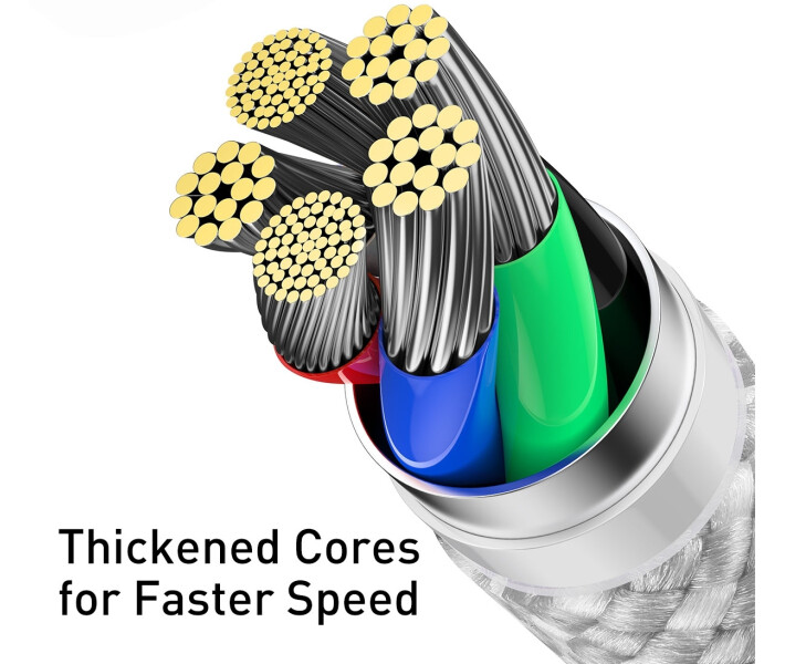 Кабель Baseus забезпечує швидку зарядку та передачу даних одночасно! Після підключення до комп'ютера починається активне завантаження та передача файлів. З його допомогою можна передавати дані між пристроями на швидкості до 480 Мбіт/с. Це пов'язано з обладнанням, яке складається із стандарту USB 2.0.