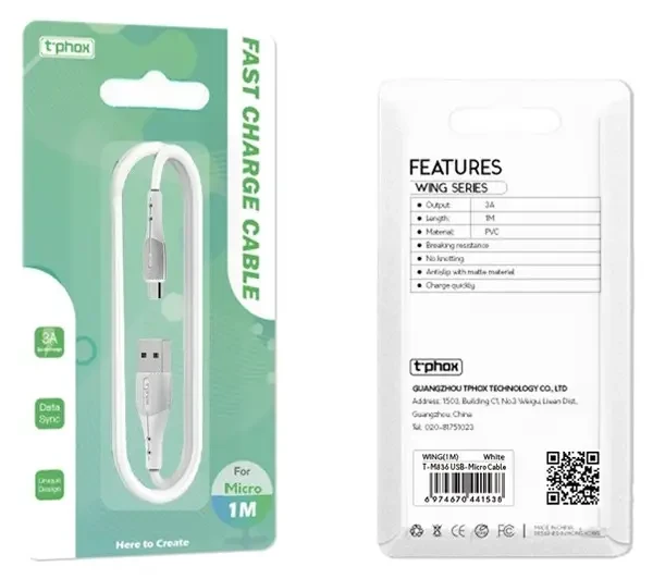 Інформація Кабель T-Phox WING T-M836 MICRO USB 1м