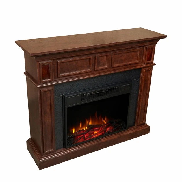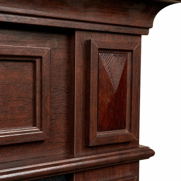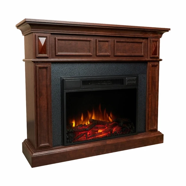 Камінокомплект Bonfire LEV колір темно-коричневий горіх відрізняється строгим дизайном і лаконічним поєднанням сучасних тенденцій з класичними рішеннями. Складається з якісного порталу та електричної топки. Портал виготовлений із екологічно чистого матеріалу: плити МДФ покриті шпоном із зрізу деревини. Грунтовка та лакове покриття дерев'яного шпону захищає верхній шар каміна від механічних пошкоджень. Електрична топка Прімо, розмір 23 дюйми, корпус виготовлений з металу. Передня панель каміна пряма, за склом розташовані імітаційні дрова, вбудовано світлодіодне підсвічування. Управління функціями каміна здійснюється за допомогою панелі управління, розташованої на фасадній частині топки, а також за допомогою дистанційного пульта. Ефект полум'я LED заснований на світлодіодних колбах. При цьому мінімальне споживання електроенергії з увімкненою функцією імітації вогню, без увімкненого обігріву. Регулюється яскравість свічення полум'я від найяскравішого до тьмяного свічення. Камін має два положення регулювання обігріву: у першому - включається один нагрівальний елемент, у другому - два. Тепле повітря надходить у кімнату з передньої частини пристрою та рівномірно розподіляється у приміщенні. Камінокомплект встановлюється біля стіни, біля електричної розетки 220В. Примітка: Камінокомплект поставляється у двох коробках. 1-портал в розібраному вигляді детально, з усіма комплектуючими та інструкцією зі складання . Розмір коробки: 122см (довжина), 20см (ширина), 39см (висота). 2-електрокамін, розмір коробки: 69см(довжина), 25см(ширина), 55см(висота).