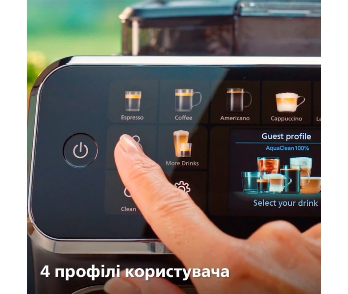 Насолоджуйтеся щоразу улюбленою кавою завдяки 4 профілям користувача, які зберігають ваші персоналізовані налаштування. Додатковий профіль гостя дозволяє вашим відвідувачам смакувати каву саме так, як їм це подобається, без зміни ваших налаштувань.