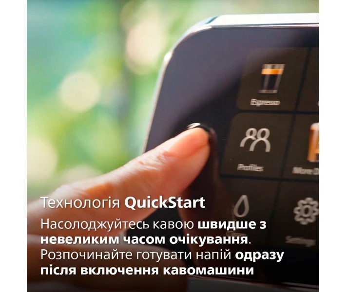 Насолоджуйтесь кавою швидше з невеликим часом очікування. Розпочинайте готувати напій одразу після включення кавомашини. За бажанням ця опція може бути вимкнена.