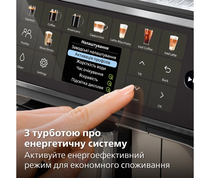 Активуйте енергоефективний режим для економного споживання електроенергії кавомашиною. Збережіть свій кавовий ритуал вдома і одночасно підтримуйте енергетику України.