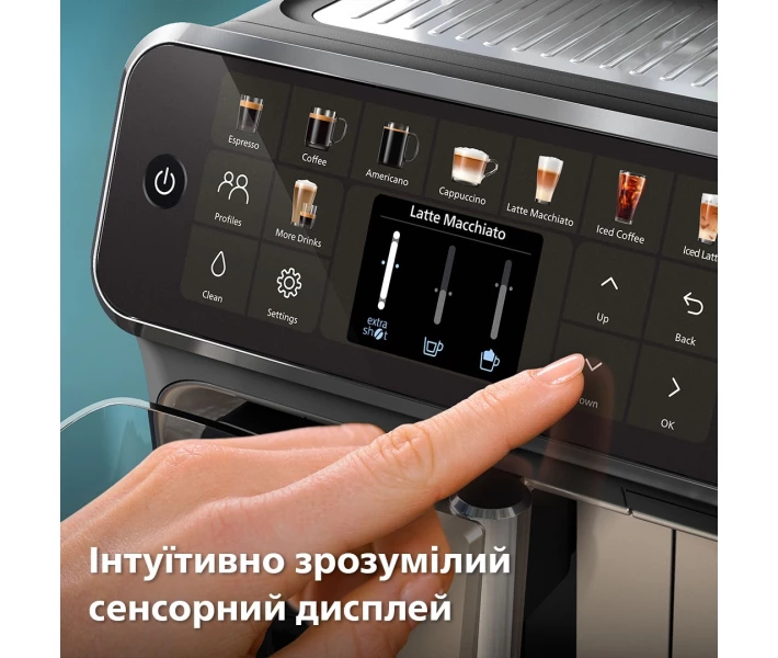 Легко обирайте улюблені напої завдяки сучасному сенсорному дисплею з кольоровими піктограмами, та налаштовуйте напій на свій смак.