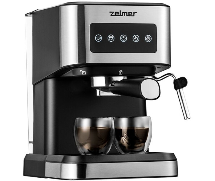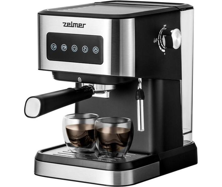 Наша кавоварка з портафільтром ZCM6255 в даний час є компактним пристроєм в нашій пропозиції. Має сенсорну панель управління з інтуїтивно зрозумілими 5 кнопками (1 чашка, 2 чашки, ВКЛ/ВИКЛ, ручне керування, гаряча пара та вода). Він відмінно підійде не тільки любителям еспресо, має вбудовану насадку для спінювання молока, завдяки якій можна приготувати смачне латте або повітряне капучіно. За допомогою однієї кнопки ви можете приготувати дві кави одночасно. Для того, щоб улюблена кава ще довше зберігала оптимальну температуру, в кавоварці передбачена функція підігріву чашок. Сенсорна панель із підсвічуванням. Ми оснастили нашу еспресо-кавоварку Zelmer сенсорною підсвічувальною панеллю. На ній є 5 кнопок, які ви використовуватимете для керування пристроєм. Доторкнувшись до однієї з них, ви зможете приготувати чашку еспресо, а інша дозволить одночасно приготувати дві чашки смачної кави. Середня кнопка використовується для увімкнення та вимкнення пристрою, наступна – для ручного керування, завдяки якому можна заварити стільки кави, скільки захочете, а остання – для гарячої води та пари. Управління цією кавоваркою дуже просте та інтуїтивно зрозуміле! Ідеально підходить не лише для любителів еспресо. Вам не обов'язково бути шанувальником лише еспресо, щоб використати нашу кавоварку. Пристрій оснащений насадкою для спінювання молока – тепер ви легко приготуєте смачний латте, повітряний капучино чи будь-який молочний напій. Щоразу, коли вам хочеться кави, ви можете використовувати кнопку ручного управління, щоб приготувати її. Можливість заварювання двох чашок кави одночасно Коли до вас приходять гості, ви можете ефективно заварити їх улюблену каву одним натисканням кнопки. Завдяки функції приготування двох чашок кави одночасно приготуєте дві чашки миттєво. Функція підігріву чашок. Якщо ви любите довго насолоджуватися смачною гарячою кавою, вам обов'язково сподобається функція підігріву чашок. Тепла судина краще збереже оптимальну температуру вашого ароматного напою, кава буде набагато смачнішою, ніж якби вона наливалася в холодну чашку