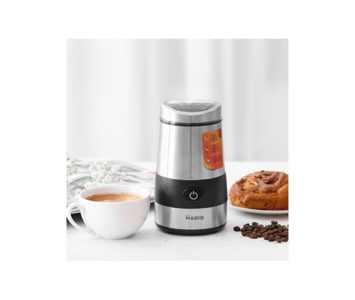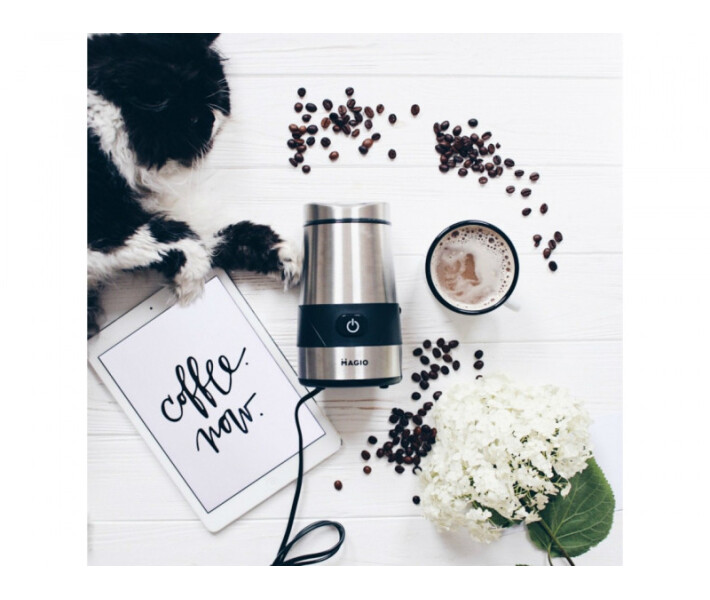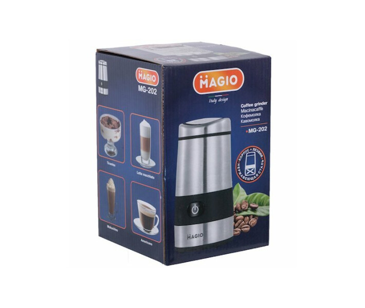 Кавомолка MG-202 з ножами з нержавіючої сталі наповнить кухню чудовим ароматом меленої кави. Колір металік - безпрограшне, класичне рішення, яке стане оригінальним акцентом в інтер'єрі Вашої кухні. Потужність приладу становить 250 Вт, що дозволяє якісно подрібнити зерна та приготувати смачну каву. Кавомолка має відсік для зберігання шнура, що дозволяє комфортно зберігати кухонний прилад у шафі. Плавний пуск двигуна та корпус з нержавіючої сталі гарантують надійність та довговічність.