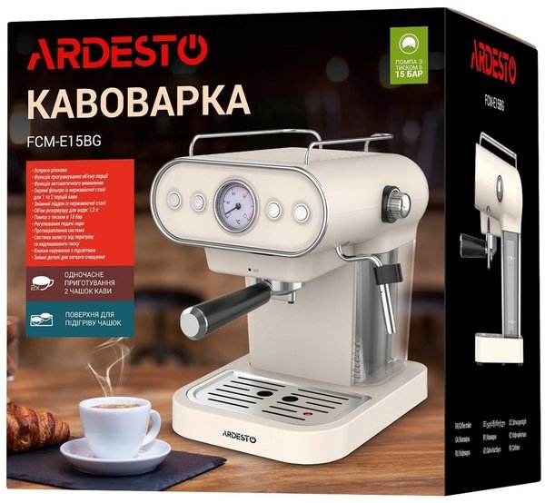 Кавоварка Ardesto FCM-E15BG - це чудовий вибір для справжніх любителів кави. Вона допомагатиме вам приготувати стійкий і ароматний напій кожен раз. Унікальний дизайн, простота використання та надійна якість роблять цей кавоварок незамінним аксесуаром на вашій кухні. Подивіться, наскільки легко можна створити свою ідеальну каву завдяки Ardesto FCM-E15BG.