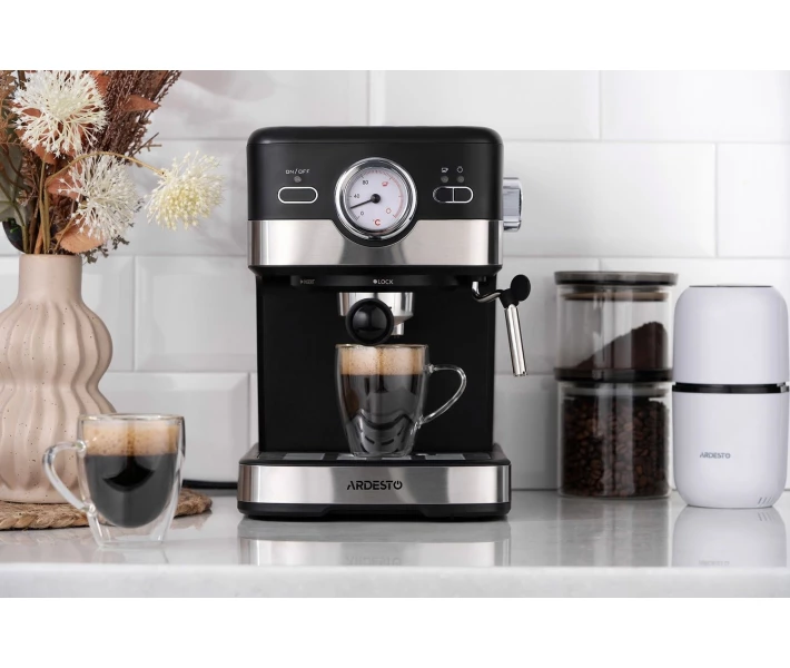 Забудьте смак посередніх кавових напоїв та подаруйте собі справжню насолоду з кавоваркою ARDESTO ріжкового типу. Це найкращий вибір для всіх, хто цінує якість та багатство смаку та аромату кави. Рожкова кавоварка ARDESTO YCM-E16B швидко приготує ароматний еспресо, а також молочні напої на його основі, такі як латте або капучіно. Має помпу тиском 20 бар, аналоговий термометр для зручного контролю нагріву води, індикатори готовності до приготування кави або молочної піни, знімну насадку капучинатора і знімний піддон для крапель для легкого очищення. Є регулювання подачі пари, поверхня для підігріву чашок та функція автоматичного вимкнення, а також можливість приготування двох чашок напою одночасно. Купити Ardesto YCM-E16B Ви можете, оформивши замовлення у нас на сайті, а також по телефону гарячої лінії.