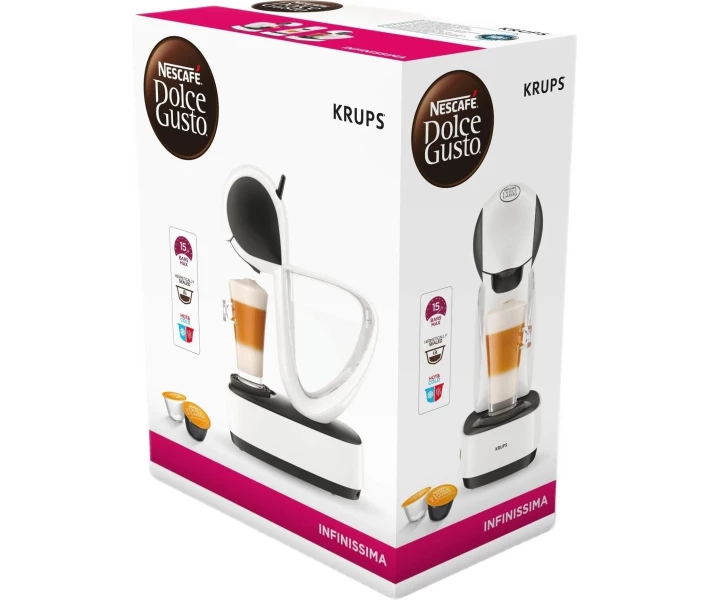 Нескінченні можливості приготування кави завдяки кавомашині NESCAFÉ® Dolce Gusto® Infinissima від Krups з резервуаром для води об'ємом 1.2 л. Така компактна, неодмінно для неї знайдеться місце навіть на невеликій кухні. Завдяки системі високого тиску (до 15 бар) приготувати каву професійної якості з високою бархатистою пінкою легко.