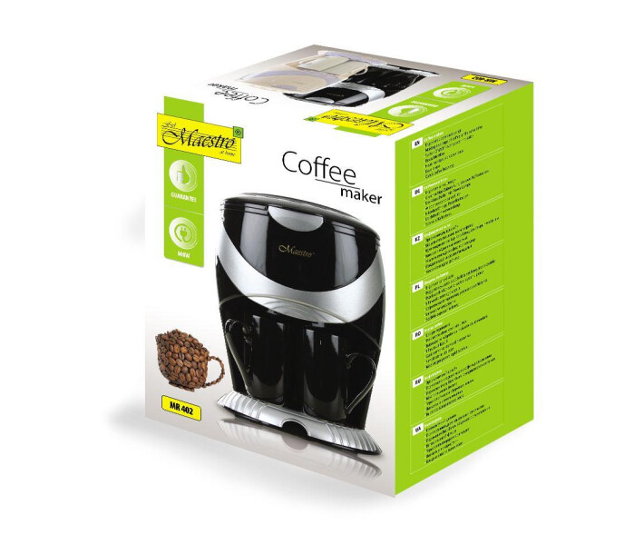 Кавоварка даної моделі Maestro MR 402 допоможе Вам приготувати ароматну, смачну каву, що бадьорить і чай. Ви можете насолодитись його смаком у кількох рідних, близьких, друзів. Відмінною особливістю даної моделі є можливість приготування двох чашок кави одночасно.