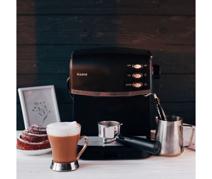 Невелика і потужна кавоварка для домашнього використання Magio MG-963 коштує купити поціновувачам смачного, ароматного кава. Кухонна техніка відрізняється гармонійним співвідношенням стильного зовнішнього вигляду і практичності в роботі. Magio MG-963 відрізняється хорошим співвідношенням ціни та якості. Надійні деталі, міцний корпус і італійська помпа забезпечать тривалу експлуатацію.